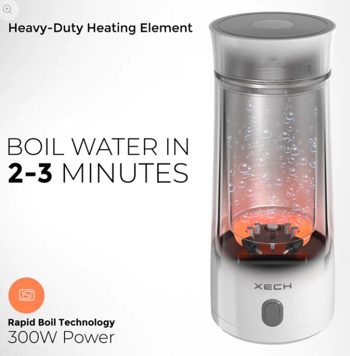 Hydroboil is a portable electric travel kettle designed in a shaped of a bottle that allows you to boil water and carry & prepare your favourite hot beverage, on the go! At the heart of the XECH Hydroboil, lies a superheating element and a powerful 300W Motor that boils water within minutes! Hydroboil is built using 304 stainless steel with double-layered insulation that prevents scalding & a host of safety features that include heat resistance, materials and a special coating that makes it easy to drink right out of the bottle!
