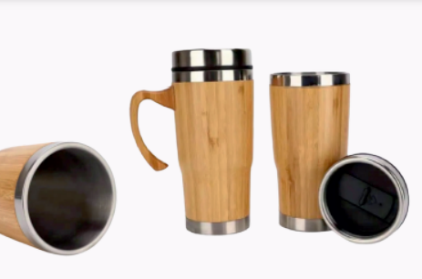 Eco-friendly Stainless steel bamboo mug tumbler with handle. Capacity-450ML