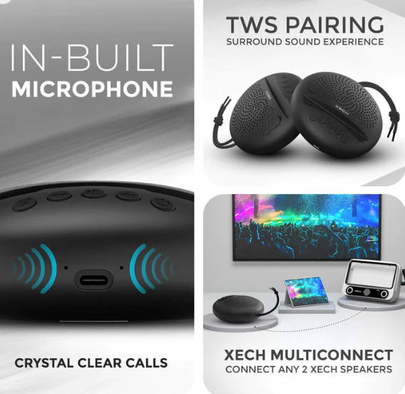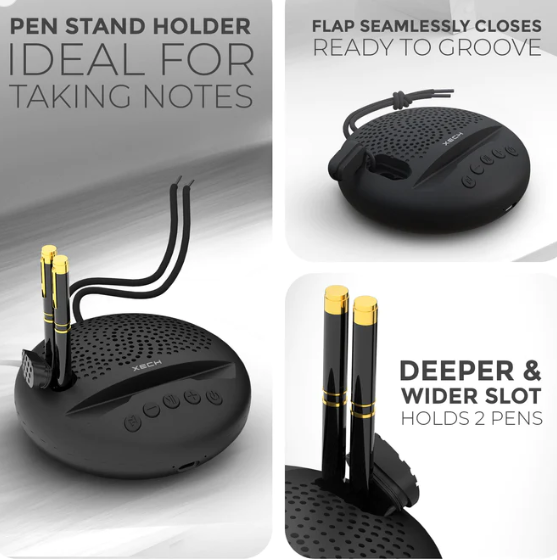 the ultimate portable Bluetooth speaker that redefines your audio experience. With its innovative design and impressive features, ARC stands out from the crowd. Immerse yourself in powerful sound with the 5W speaker, enhanced by deep bass for an immersive listening experience. The built-in phone holder offers hands-free convenience, allowing you to enjoy your favourite content at the perfect viewing angle. Stay organized with the seamless pen stand, keeping your workspace clutter-free. Experience true wireless stereo (TWS) pairing by connecting two ARC speakers for a wider soundstage. With USB C charging and a heavy-duty lanyard, ARC is your perfect companion for travel and on-the-go entertainment. Take your content video with XECH ARC, the epitome of style, functionality, and exceptional sound quality