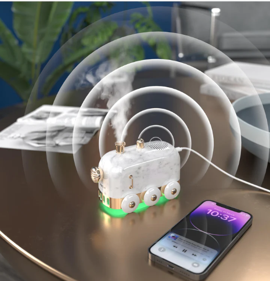 LocomystX is a premium air humidifier, and aroma diffuser with Bluetooth Speaker. Create the perfect ambience with aroma & music & transform Your Space with the captivating LocomystX, showcases mesmerizing RGB lights, immersing your space in a captivating glow. Set the mood and indulge in a visual delight for ultimate relaxation. Powered by high-vibration enabled humidification technology, it ensures the right level of humidity is delivered intelligently, creating a comfortable and refreshing atmosphere in any room. One Button Operation. USB C Powered. Compact Design.